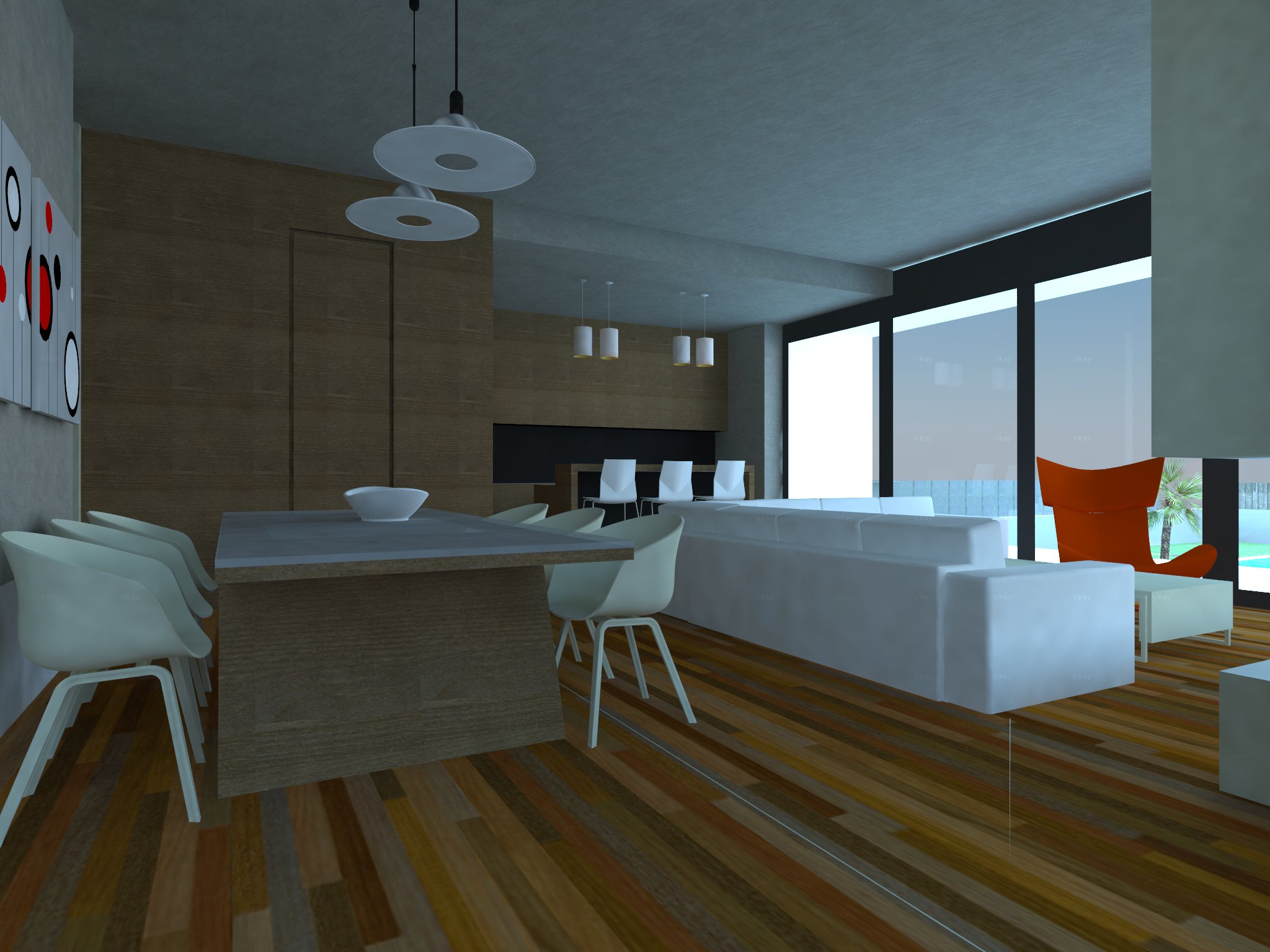 ΜΟΝΟΚΑΤΟΙΚΙΑ ΣΤΟ ΛΑΓΟΝΗΣΙ: άποψη ενιαίου χώρου καθιστικού/τραπεζαρίας/κουζίνας