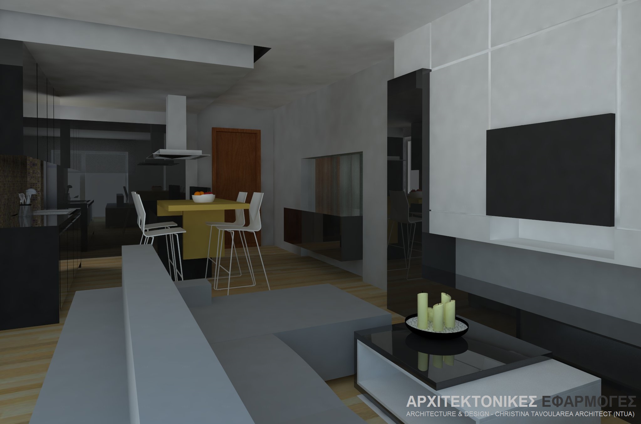 ΑΝΑΚΑΙΝΙΣΗ ΔΙΑΜΕΡΙΣΜΑΤΟΣ ΣΤΗ ΝΙΚΑΙΑ: Άποψη ενιαίου χώρου καθιστικού – κουζίνας