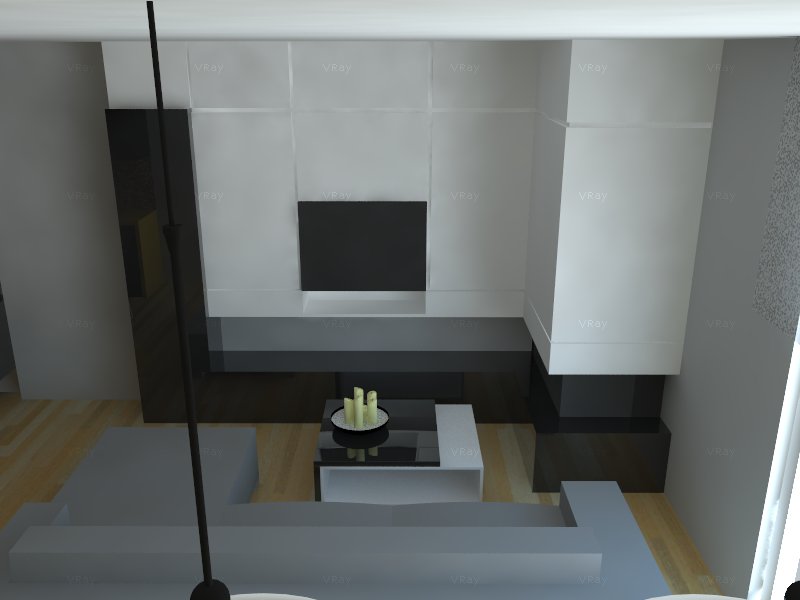 Αν το τζάκι δεν χρησιμοποιείται συχνά, ή θέλουμε να έχει «δευτερεύοντα» ρόλο, π.χ. διότι προτιμούμε την τηλεόραση απέναντι από τον καναπέ σε κεντρική θέση, μπορεί να επιλέξουμε η tv να παίξει τον ρόλο του «κέντρου» της σύνθεσης και ο σχεδιασμός να οργανωθεί με αυτό το δεδομένο, όπως στο ακόλουθο παράδειγμα, όπου η τηλεόραση προτείνεται σε κεντρική θέση και το τζάκι στο πλάι: