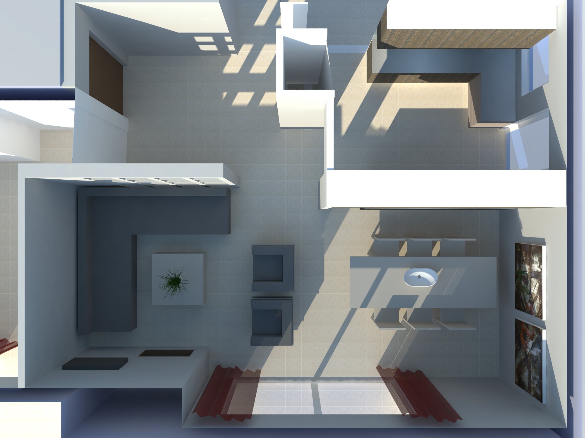 κουζίνα: ο πάγκος θα πρέπει να έχει ένα μήκος κάτω στάθμης τουλάχιστον 4,00μ. ώστε να εξυπηρετεί τις ελάχιστες ανάγκες μας. Επίσης σημαντική είναι η εξασφάλιση έστω πάγκου πρωινού (αν όχι τραπεζιού) εντός του χώρου της κουζίνας.