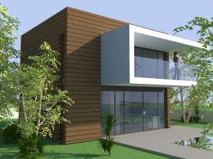 «CUBE CONCEPT» – μοντέλο ξύλινης μονοκατοικίας, άποψη Νότιας & Δυτικής Όψης